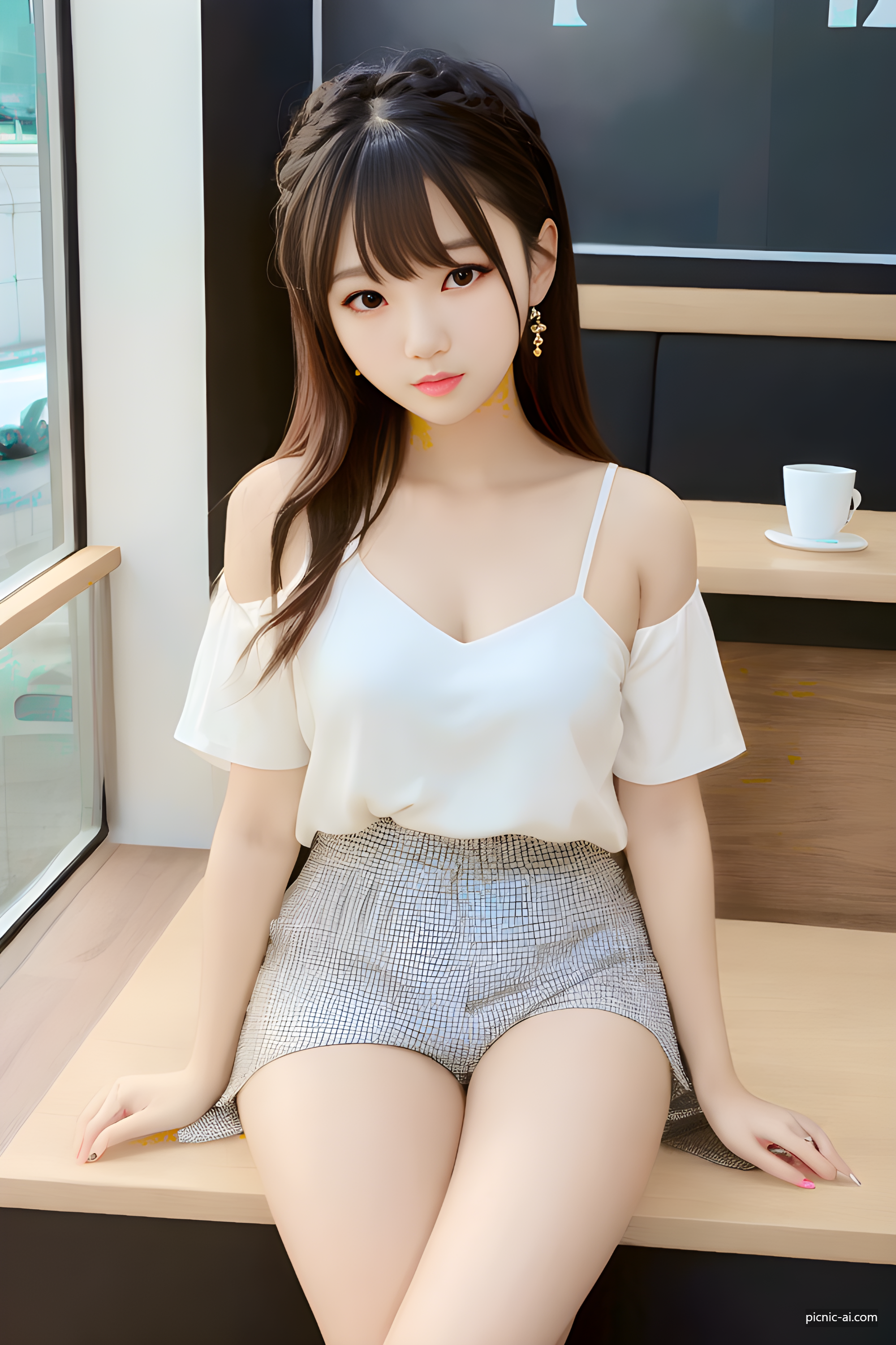 AI야 카페에 앉은 청순한 그녀를 그려